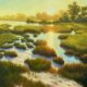 Once a year Bishop’s Stock likes to focus on the diverse talents of the gallery’s artists. It seemed timely to welcome spring with this show in March. Among the artists showing are John Cleary, Denise Dumont, Scot Dolby, Helene English, Lynne Lockhart, Kirk McBride, Carole Boggemann Pierson, Jim Rehak, Stan Sperlak and Nancy West. This exhibit mixes representational and contemporary work in oil, acrylic, pastel, watercolor and mixed media. The show opens on March 1 and closes April 2. Left: Sunrise by Stan Sperlak; Right: Workboat by Helene English